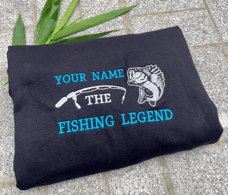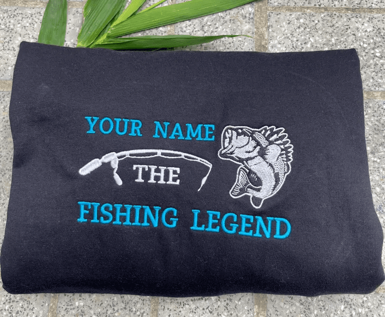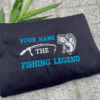 Custom Name Fishing Legend Fisherman Bass Fish lover Embroidered Tshirt, Sweatshirt, Hoodie
