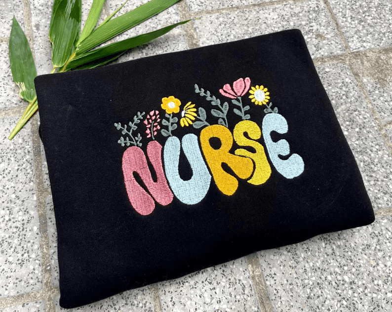 Floral Nurse Nursing Embroidered Tshirt, Sweatshirt, Hoodie